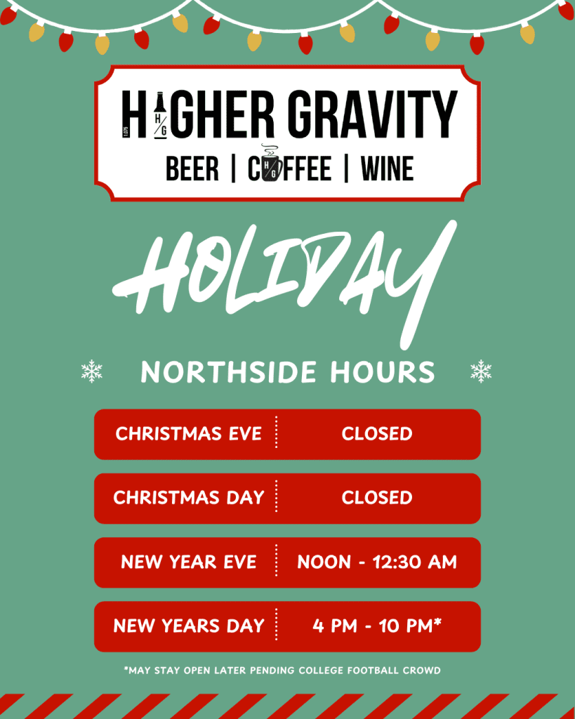 Our Northside location is where everything started back in 2017. The original Higher Gravity is the place to be in the area if you are looking for the best Craft Beer, Wine & Cocktails that you can find.