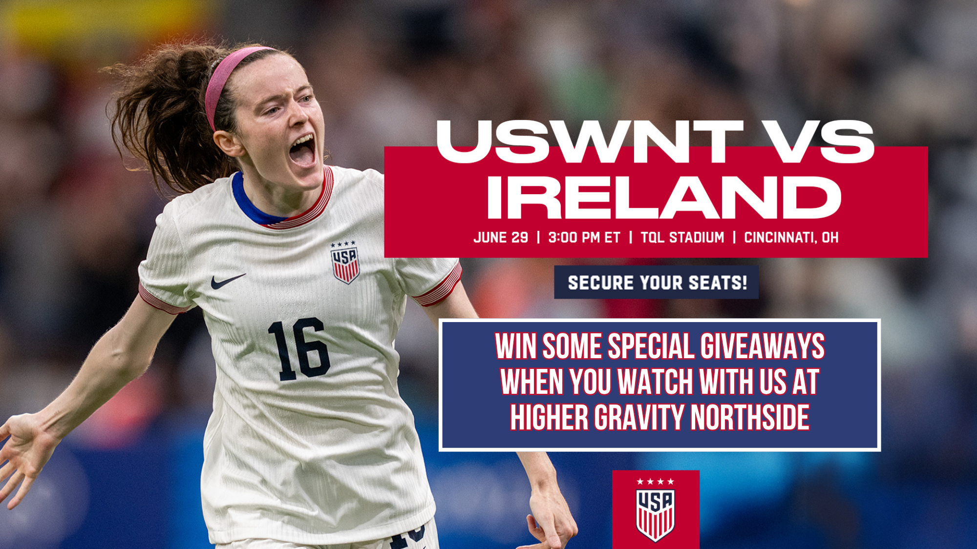 Join us at Higher Gravity Northside for a USWNT Watch Party as they take on Ireland. Swag giveaway included!